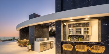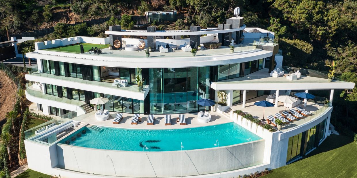 Spanning over 2,200 m² of interior space and more than 1,100 m² of terraces, the home showcases exceptional design and craftsmanship across four levels. Highlights include double-height ceilings, a state-of-the-art gourmet kitchen, a cinema and games area with bowling alley, a rooftop terrace, and spectacular indoor and outdoor pools inspired by the ambiance of a private beach club.