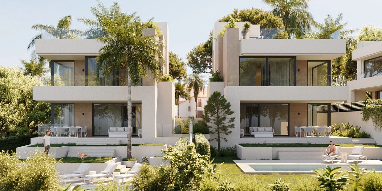 Each villa is distributed across multiple levels and features open-plan interiors filled with natural light, private landscaped gardens, swimming pools and expansive rooftop solariums designed for outdoor living year-round. Generous terraces and seamless indoor–outdoor connections enhance the sense of space, while additional areas dedicated to wellness and leisure complete the lifestyle offering. Discreet, low-density and thoughtfully designed, this is a contemporary residential concept ideal for enjoying an effortless Mediterranean lifestyle just moments from the coast.